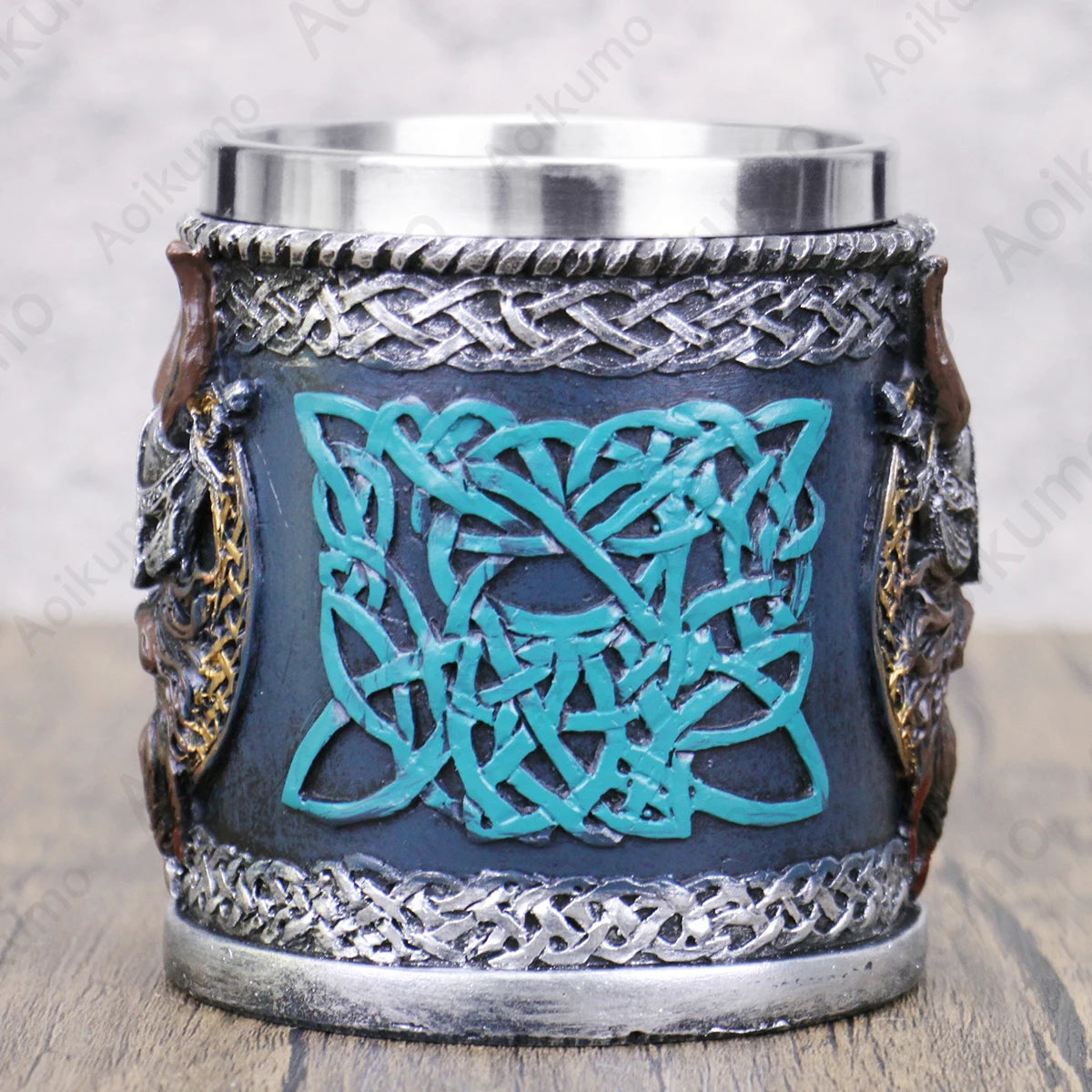Valhalla Viking Stainless Steel Single Handle Horn Skull Beer Stein Cup Nordic Viking Warrior Skull Mug Tankard 400ml Halloween